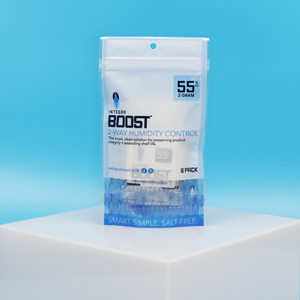 Use our 2-gram Integra Boost 2-way humidity control packs to control moisture in an enclosed area. Our patented technology will either release or absorb moisture, maintaining relative humidity at 55% in a contained environment. 2-gram Boost can be used with up to 7 grams of product.