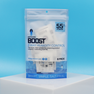 Use our 4-gram Integra Boost 2-way humidity control packs to control moisture in an enclosed area. Our patented technology will either release or absorb moisture, maintaining relative humidity at 55%in a contained environment.
