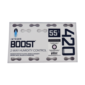 Use our 420-gram Integra Boost 2-way humidity control packs to control moisture in an enclosed area. Our patented technology will either release or absorb moisture, maintaining relative humidity at 55% in a contained environment. 420-gram Boost can be used with up to 7 lbs of product.