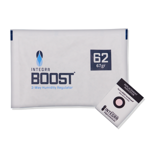 Use our 67-gram Integra Boost 2-way humidity control packs to control moisture in an enclosed area. Our patented technology will either release or absorb moisture, maintaining relative humidity at 62%in a contained environment.