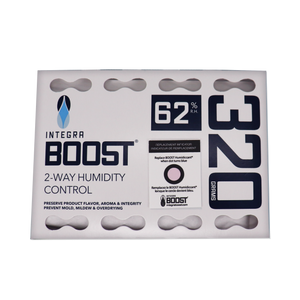 Use our 320-gram Integra Boost 2-way humidity control packs to control moisture in an enclosed area. Our patented technology will either release or absorb moisture, maintaining relative humidity at 62% in a contained environment. 320-gram Boost can be used with up to 5 lbs of product.